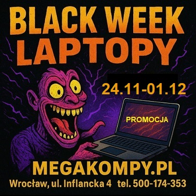Od 24 listopada do 1 grudnia Megakompy.pl otwierają cyfrowy portal do krainy, gdzie laptopy są tańsze niż twój miesięczny zapas papieru toaletowego kupiony „na wszelki wypadek”